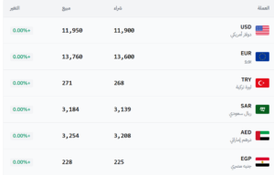 في سوق الحسكة (11,900 شراء – 11,950 بيع).