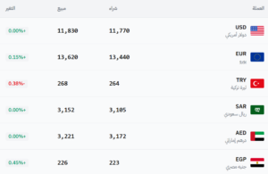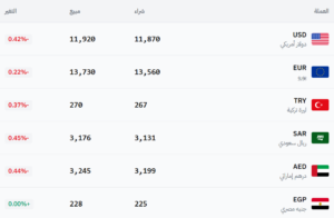 في سوق الحسكة (11,870 شراء – 11,920 بيع).