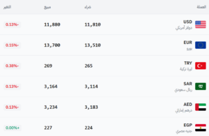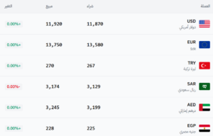 في سوق الحسكة (11,870 شراء – 11,920 بيع).