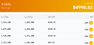 وسجّل سعر غرام الذهب (1,421,200 ليرة سورية_عيار18)، و(1,658,000 ليرة سورية_عيار21).