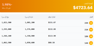 وسجّل سعر غرام الذهب (1,350,900 ليرة سورية_عيار18)، و(1,576,000 ليرة سورية_عيار21).