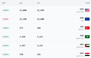 في سوق الحسكة (11,950 شراء – 12,000 بيع).