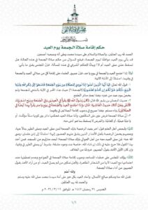 وشدد المجلس على خطباء المساجد بضرورة إقامة صلاة الجمعة في الجوامع، وعدم تعطيلها عند اجتماعها مع العيد، باعتبارها شعيرة ظاهرة، وليتمكن من لم يصل العيد، أو من يريد الأخذ برأي الجمهور من أدائها.