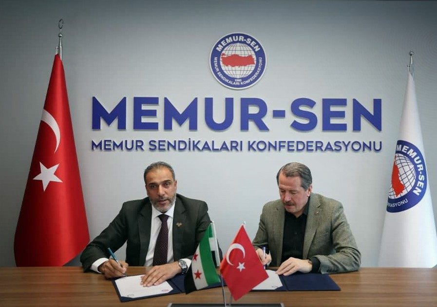 وقّع الاتحاد العام لنقابات العمال في سوريا، واتحاد نقابات موظفي القطاع العام في تركيا (MEMUR‑SEN) اتفاقية تعاون، لتطوير العلاقات النقابية وتبادل الخبرات والوفود، وتعزيز العمل الثنائي في القضايا ذات الاهتمام المشترك.