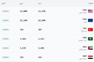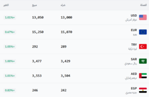 في سوق سوريا – عام (12,930 شراء – 13,000 بيع).