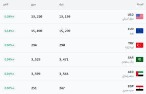 في سوق الحسكة (13,140 شراء – 13,200 بيع).