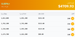 وسجّل سعر غرام الذهب (1,493,500 ليرة سورية_عيار18)، و(1,742,400 ليرة سورية_عيار21).