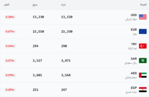في سوق سوريا – عام (13,150 شراء – 13,230 بيع).