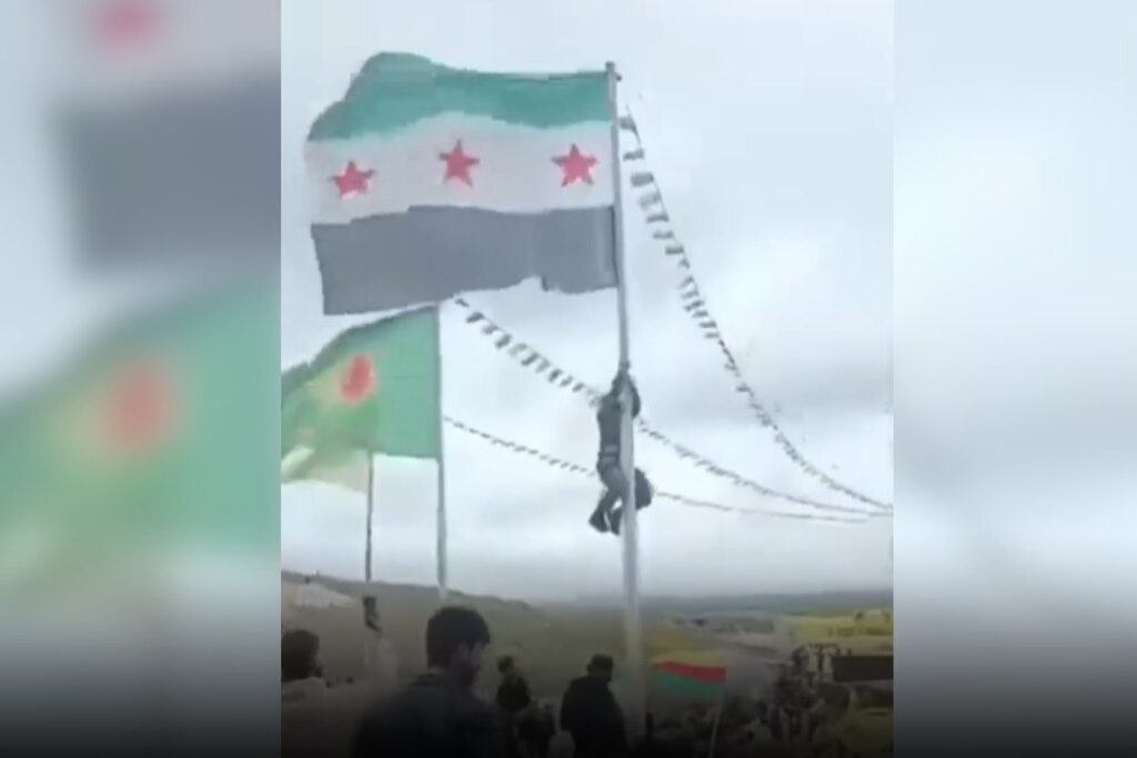 وأوضحت القيادة في بيان رسمي أن الجهات المختصة تتابع الحادثة باهتمام كبير، بعد تداول صور على مواقع التواصل الاجتماعي تُظهر قيام أحد الأشخاص بإنزال العلم السوري بشكل متعمد خلال احتفالات أقيمت في مدينة عين العرب بريف حلب الشرقي، في تصرف اعتبرته مخالفاً للقوانين والأنظمة النافذة.